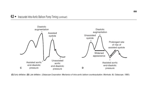 D (C) Early deflation. (D) Late deflation. (Datascope Corporation: Mechanics of intra-aortic balloon counterpulsation. Montvale, NJ: Datascope, 1989.)