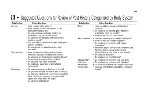 Suggested Questions for Review of Past History Categorized by Body System