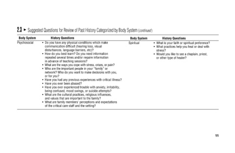 Suggested Questions for Review of Past History Categorized by Body System (continued)