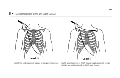 ECG Lead Placement for a Three-Wire System (continued) Lead III: the positive electrode is placed on the upper left abdomen.