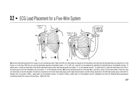 Angle of Louis B (A) Correct electrode placement for using a 5-wire monitoring cable. Right and left arm electrodes are placed on the shoulders and right and left leg electrodes are placed low on the thorax or on the hips. With the a