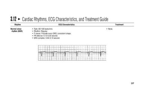 Rate: 60-100 beats/min. Rhythm: Regular. P waves: Precede every QRS; consistent shape. PR interval: 0.12-0.20 second. QRS complex: 0.04-0.10 second.