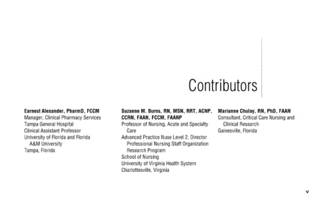 Contributors Marianne Chulay, RN, PhD, FAAN Consultant, Critical Care Nursing and Clinical Research Gainesville, Florida