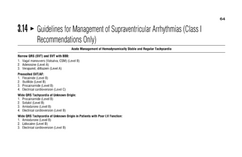 Recommendations Only) Acute Management of Hemodynamically Stable and Regular Tachycardia Vagal maneuvers (Valsalva, CSM) (Level B) Wide QRS Tachycardia of Unknown Origin in Patients with Poor LV Function: