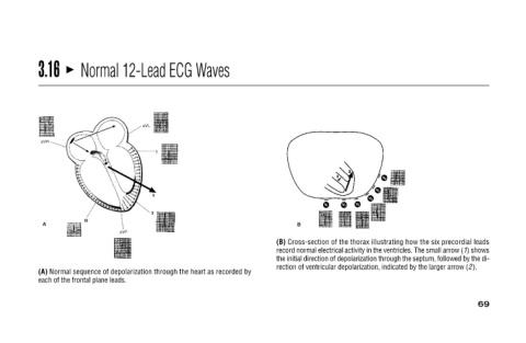 Normal 12-Lead ECG Waves (A) Normal sequence of depolarization through the heart as recorded by