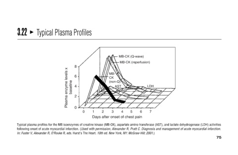 MB- CK (non-Q) AST 3 Daysafter onset of chest pain Typical plasma profiles for the MB isoenzymes of creatine kinase (MB-CK), aspartate amino transferase (AST), and lactate dehydrogenase (LDH) activities