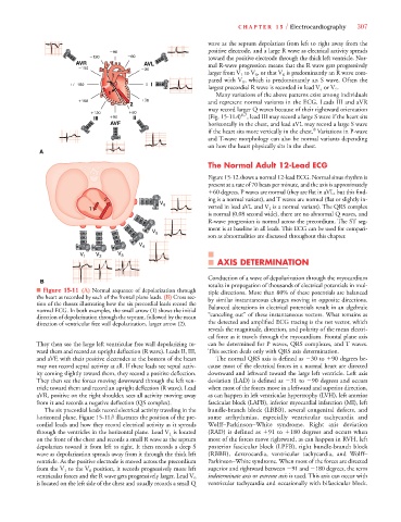 ■ Figure 15-11 (A) Normal sequence of depolarization through tiple directions. More than 80% of these potentials are balanced