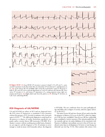 ■ Figure 15-32 (A) Acute RVMI. ST elevation is present in leads II, III, aVF, and V 1 ; recip- V5 R R R R R R R R
