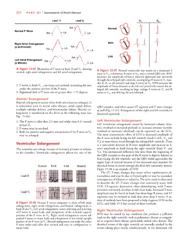 ■ Figure 15-35 Illustration of P waves in leads II and V 1 , showing ■ Figure 15-37 Normal ventricular size results in a dominant S