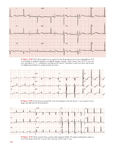 ■ Figure 15-45 ECG effects shown here are typical of many drugs and can also be due to hypokalemia. This