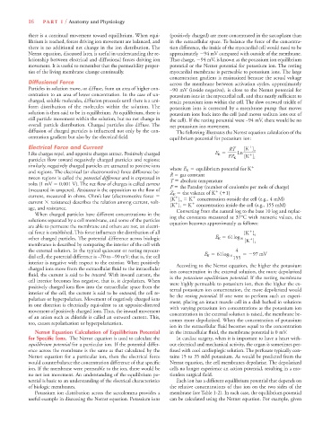 Particles in solution move, or diffuse, from an area of higher con- –90 mV (inside negative), is close to the Nernst potential for