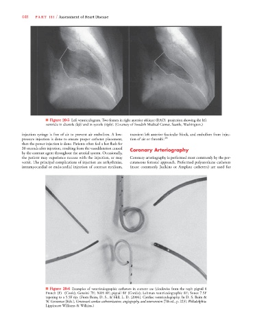the patient may experience nausea with the injection, or may Coronary arteriography is performed most commonly by the per-