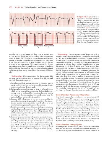 to sense intrinsic activity that is present (Figs. 28-16A and rate or ventricular asystole. Oversensing is usually caused by the