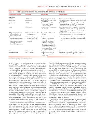 Table 40-1 ■ METHODS OF ADHERENCE MEASUREMENT AND FEATURES OF THEIR USE