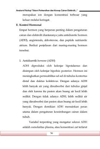 cairan dan elektrolit diantaranya yaitu antidiuretic hormon