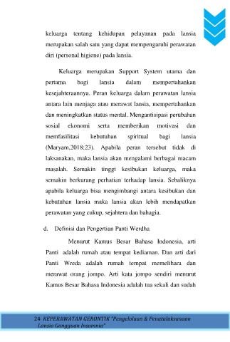kesejahteraannya. Peran keluarga dalam perawatan lansia