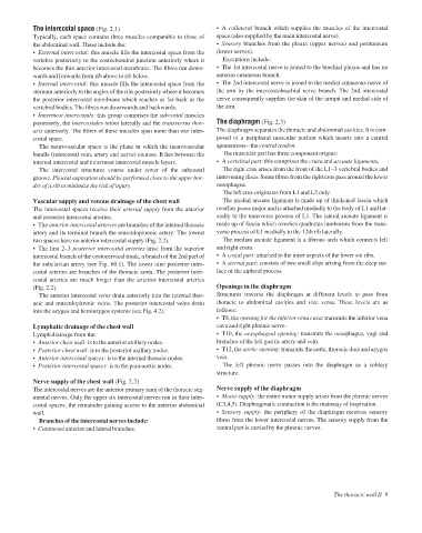 becomes the thin anterior intercostal membrane. The fibres run down- • The 1st intercostal nerve is joined to the brachial plexus and has no