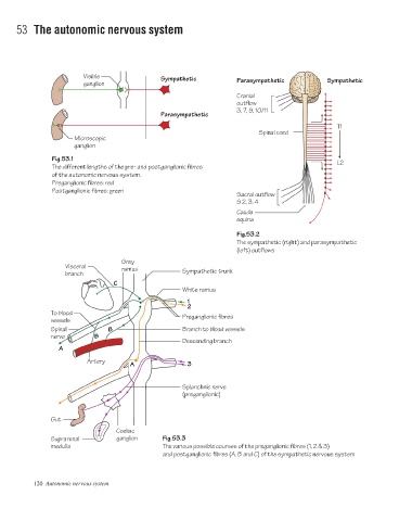 and postganglionic fibres (A, B and C) of the sympathetic nervous system