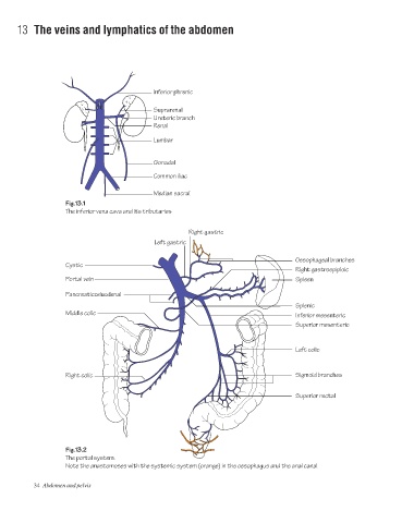 Note the anastomoses with the systemic system (orange) in the oesophagus and the anal canal