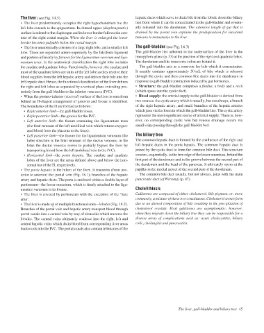 • The liver anatomically consists of a large right lobe, and a smaller left The gall-bladder (see Fig. 14.3)