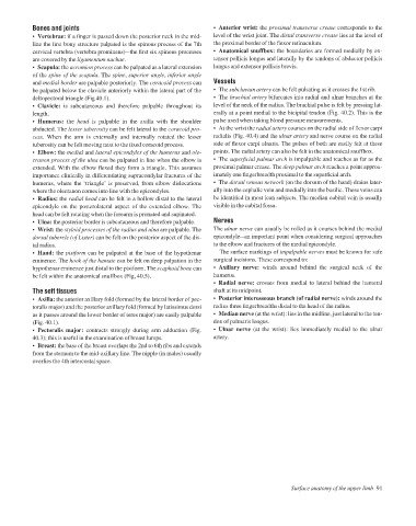 • Clavicle: is subcutaneous and therefore palpable throughout its level of the neck of the radius. The brachial pulse is felt by pressing lat-