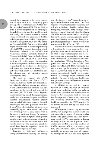 consumer (nIH/nCCAM, 2010b). Rigorous health care providers and development of