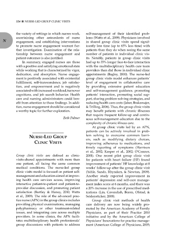 tion, nurse engagement should be considered & Trilling, 2006). Thus, the group clinic visits