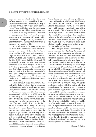 6 n ACTivE SURvEiLLANCE FoR PRoSTATE CANCER