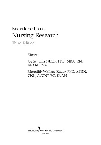 Encyclopedia of Nursing Research Third Edition Editors Joyce J. Fitzpatrick, PhD, MBA, RN, FAAN, FNAP Meredith Wallace Kazer, PhD, APRN, CNL, A/GNP-BC, FAAN