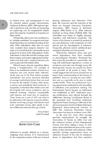 frequently overlooked when elders come into of addictions and psychiatric nursing. The