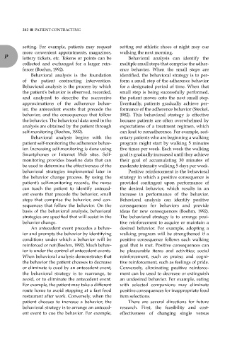 patient’s self-monitoring records, the nurse provided contingent upon performance of