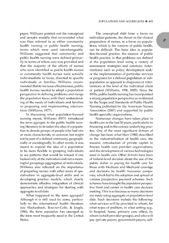 was then referred to as either community preparation of nurses, to a focus on popula- P