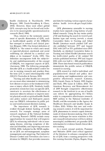 Disease control and Prevention also have a ity of QOl from a nursing perspective with