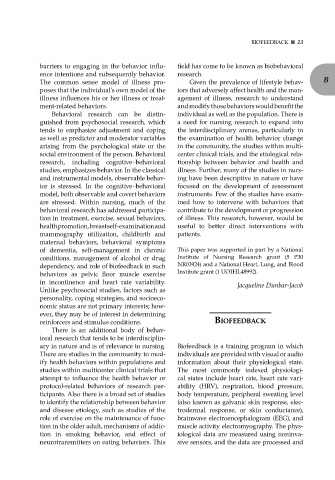 ary in nature and is of relevance to nursing. Biofeedback is a training program in which