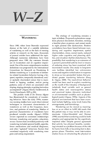 defines wandering as “a syndrome of demen- scores and negative verbalization in response