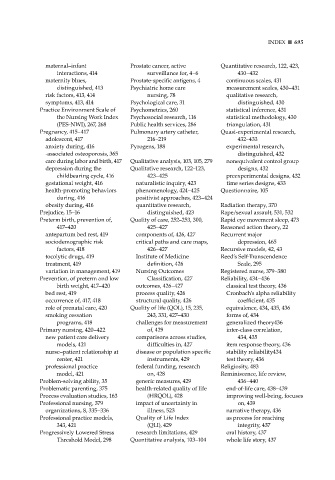 care during labor and birth, 417 Qualitative analysis, 103, 105, 279 nonequivalent control group