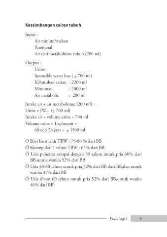 Ö Bayi baru lahir TBW : 75-80 % dari BB