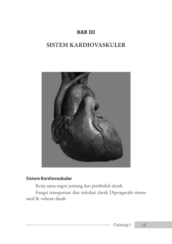 BAB III SISTEM KARDIOVASKULER Sistem Kardiovaskular Kerja sama organ jantung dan pembuluh darah. Fungsi transportasi dan sirkulasi darah Dipengaruhi sistem saraf & volume darah Fisiologi I 13