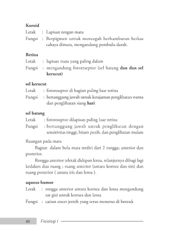 Fungsi : mengandung fotoreseptor (sel batang dan dan sel