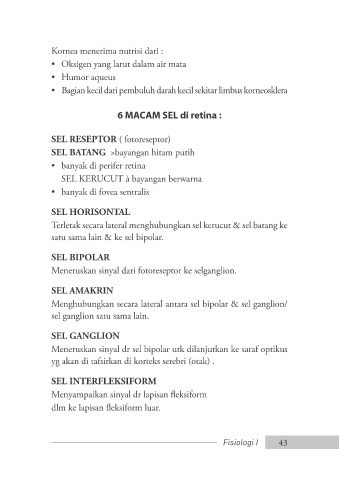 Terletak secara lateral menghubungkan sel kerucut & sel batang ke