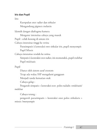 Simpatis à kontraksi otot radier, iris memendek, pupil melebar