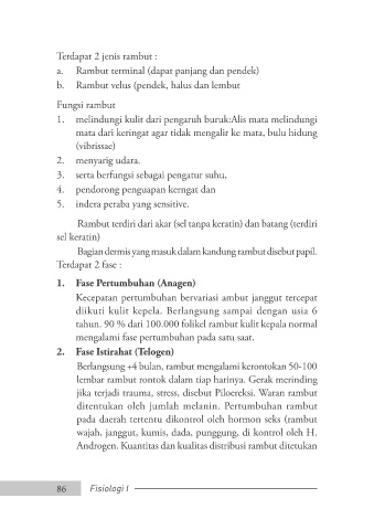 Rambut terdiri dari akar (sel tanpa keratin) dan batang (terdiri