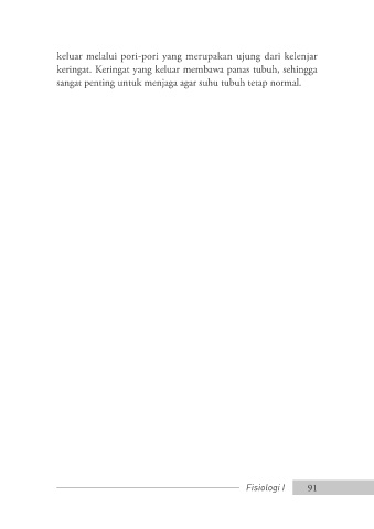 keluar melalui pori-pori yang merupakan ujung dari kelenjar keringat. Keringat yang keluar membawa panas tubuh, sehingga sangat penting untuk menjaga agar suhu tubuh tetap normal. Fisiologi I 91