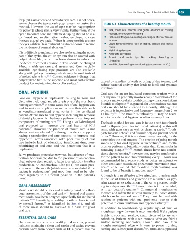 incidence of corneal abrasion. This should be changed ● No difficulties eating or swallowing (uncommon in ICU)