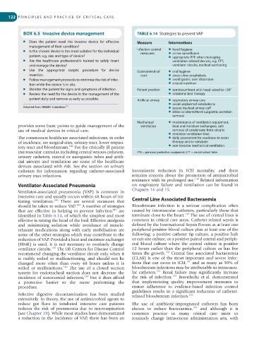 BOX 6.5 Invasive device management TABLE 6.14 Strategies to prevent VAP