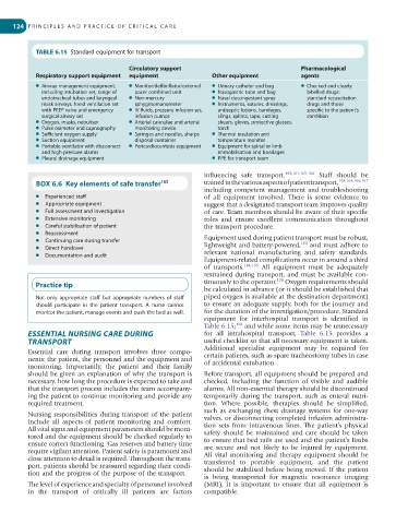 BOX 6.6 Key elements of safe transfer 163 trained in the various aspects of patient transport, 158,164,166,167