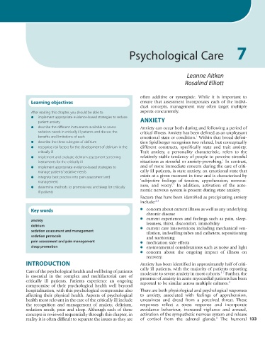 the recognition and management of anxiety, delirium, responses reflect a stress response and incorporate
