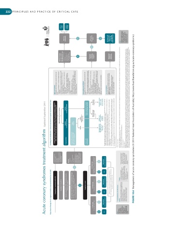 222 P R I N C I P L E S A N D P R A C T I C E O F C R I T I C A L C A R E FIGURE 10.6 Management of acute coronary syndromes (© 2011 National Heart Foundation of Australia), http://www.heartfoundation.org.au/acute-coronary-syndrome.)
