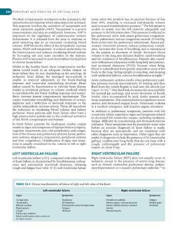 TABLE 10.4 Clinical manifestations of failure of right and left sides of the heart