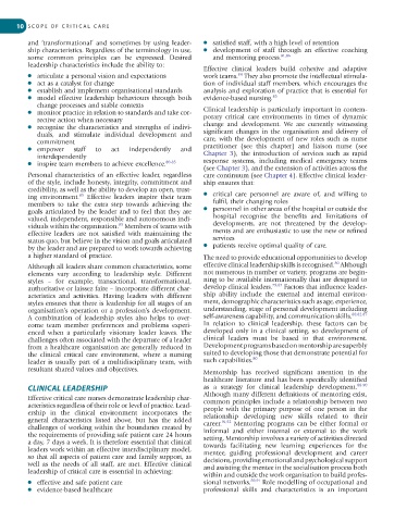 ing environment. Effective leaders inspire their team ● critical care personnel are aware of, and willing to